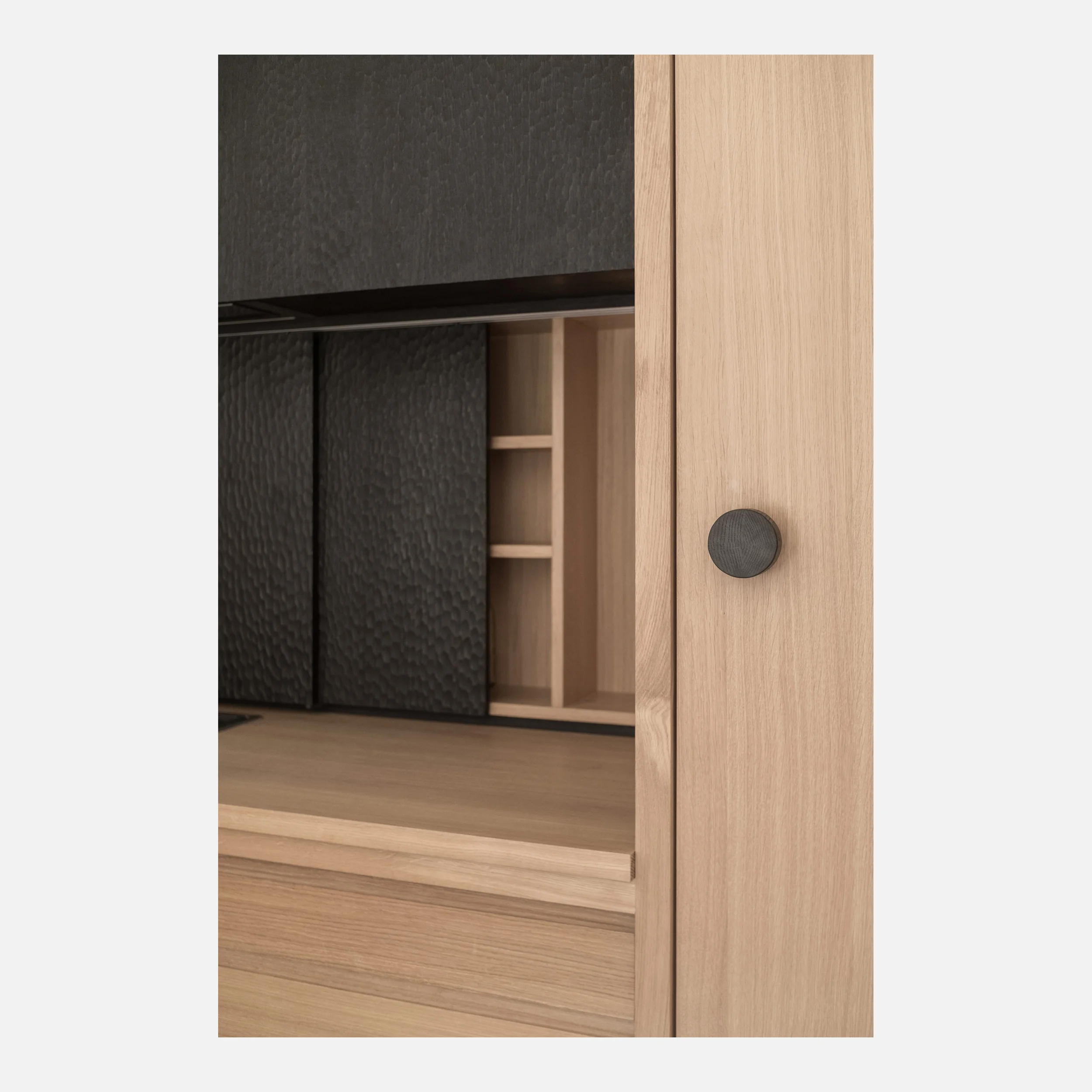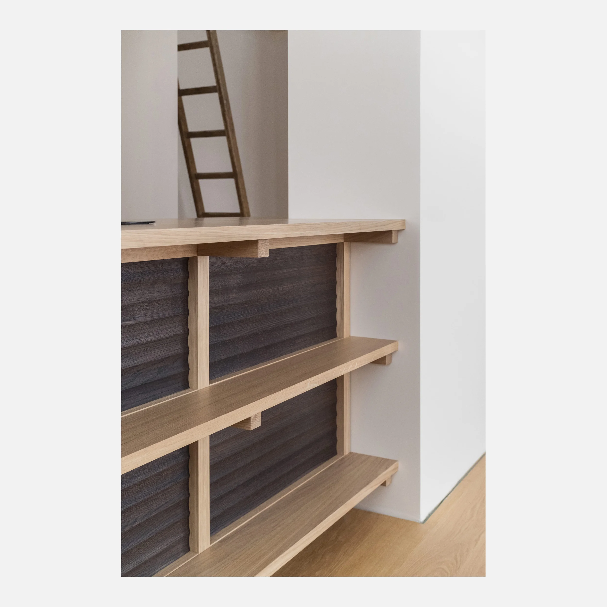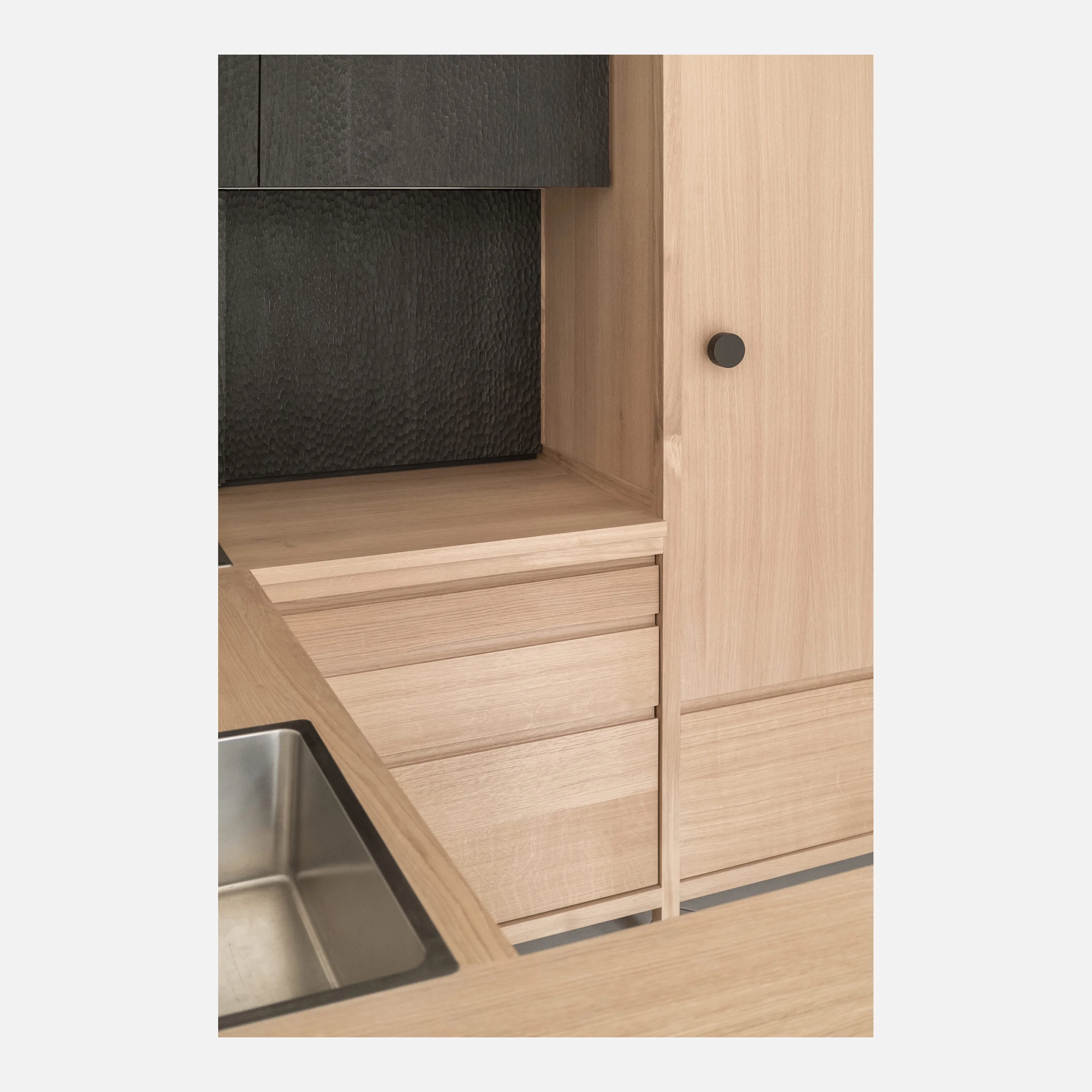 Od prve izdelane kuhinje, ki se je izkazala za uspešno - in do danes opravlja svojo funkcijo enako dobro kot prvi dan, sva skozi naslednje projekte razvijala konstrukcijski sistem in njegove detajle, optimizirala izdelavo in dodala vrsto elementov ter detajlov, ki gradijo oblikovni jezik kuhinj Studia Moste.
